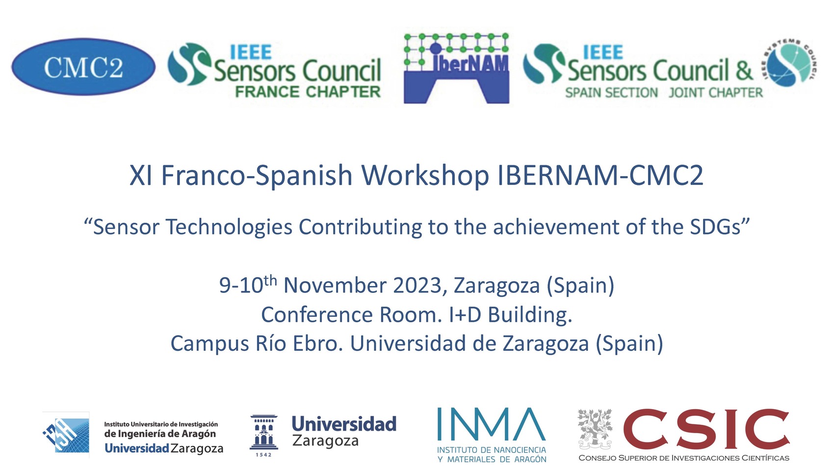 Desde 2002, celebramos un Workshop conjunto entre IBERNAM y CMC2 (la red temática francesa sobre sensores y microsistemas) donde tenemos la oportunidad de reunirnos con nuestros colegas y discutir informalmente resultados, oportunidades de colaboración y futuras acciones conjuntas. El evento de este año será en colaboración con el IEEE Sensors Council France Chapter y el IEEE Sensors Council and Systems Council Spain Section Joint Chapter que también conmemorará el 10º año desde su creación así como el 25 aniversario del IEEE Sensors Council.