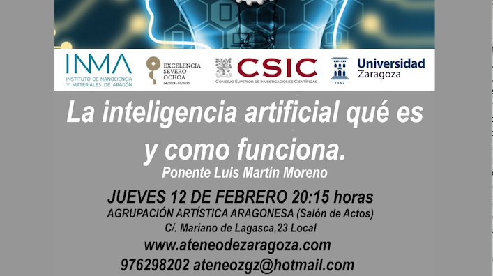 Esta conferencia es organizada por el Ateneo de Zaragoza en colaboración con la Agrupación Artística Aragonesa, el Instituto de Nanociencia y Materiales de Aragón (INMA), el CSIC y la Universidad de Zaragoza.