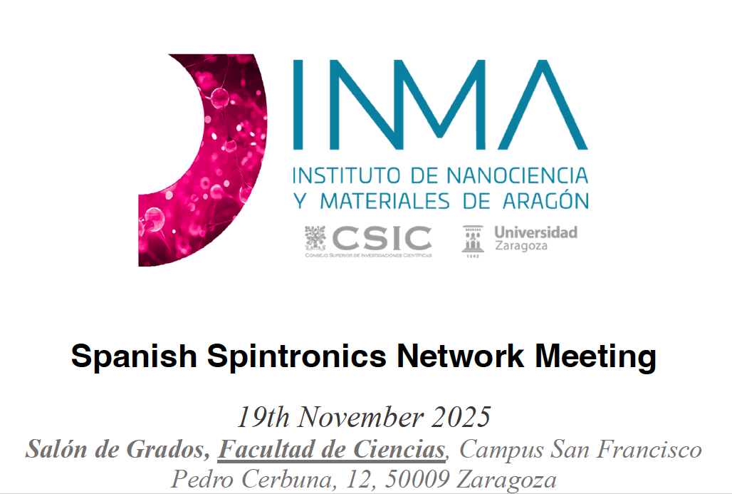El Spanish Spintronics Network Meeting 2025 se celebrará el miércoles 19 de noviembre de 2025 en el Salón de Grados de la Facultad de Ciencias, Campus San Francisco de la Universidad de Zaragoza. Este encuentro reunirá a investigadores de toda España que trabajan en el campo de la espintrónica y espin-órbitrónica, ofreciendo una jornada intensiva de charlas científicas y discusión sobre los avances más recientes en materiales magnéticos, corrientes de espín y nuevas funcionalidades electrónicas.