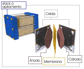 Las celdas de combustible se basan en reactores electroquímicos donde la energía química se convierte en electricidad, sin mediar proceso alguno de «combustión». El dispositivo es muy simple: está formada por dos electrodos separados por un electrolito (un material especialmente tratado que permite el paso de iones -átomos cargados positiva o negativamente- pero no de electrones). En el electrodo negativo (ánodo) tiene lugar la oxidación del combustible (normalmente hidrógeno aunque puede ser metanol u otros) y en el positivo (cátodo), la reducción del oxígeno del aire.