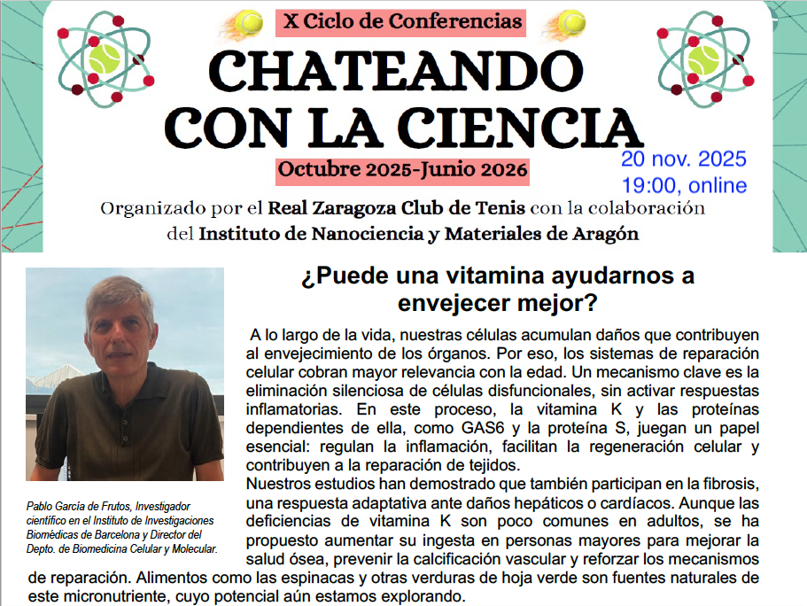 Chateando con la Ciencia: Pablo García de Frutos, from the Barcelona Institute for Biomedical Research: “Can a vitamin help us age better?”
